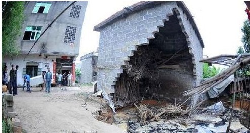 在壇洛村馬重坡地陷現場看到,在水稻田中出現一個約300平方米的塌陷坑,距離其不遠的地方另有一個約20平方米的塌陷坑;而在壇洛二中的新建體育館前,記者發現塌陷地面又有新的裂縫。而在原來劃定的危險區域外,發現一棟老民宅的地基石塊和墻體均出現裂縫。