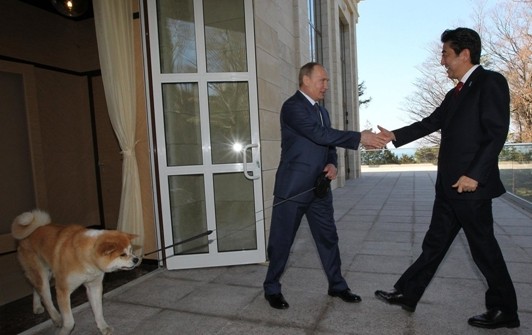 2012年7月訪俄時(shí)送給普京的禮物是一只秋田犬,名字意思是“夢”,送的時(shí)候3個(gè)月大,現(xiàn)在已快兩歲。普京在迎接安倍時(shí)專門帶上它同安倍重會。俄羅斯媒體報(bào)道,見到Y(jié)ume后,安倍用俄語說了一句“好狗”,普京回答說:“但它有時(shí)候也咬人。” 網(wǎng)友周龍然說 用狗迎接安倍真的恰當(dāng)不過【普京牽著寵物狗會見安倍】 謝鑫少年本格推理 牽著狗……好吧,老普你贏了……【普京牽著寵物狗會見安倍】