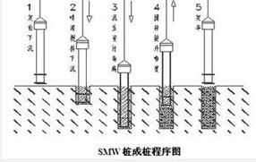 SMW工法的特點(diǎn) SMW工法型鋼水泥土攪拌墻,是以多軸型鉆掘攪拌機(jī)在原位地層向一定深度進(jìn)行鉆掘,同時(shí)在鉆頭處噴出水泥系強(qiáng)化劑而與地基土反復(fù)混合攪拌,在各施工單元之間則采取重疊搭接施工,然后在水泥土混合體未結(jié)硬前插入H 型鋼或鋼板作為其應(yīng)力補(bǔ)強(qiáng)材,至水泥結(jié)硬,便形成一道具有一定強(qiáng)度和剛度的、連續(xù)完整的、無(wú)接縫的地下墻體。
