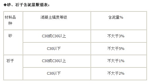 以下是金固公司接沙盤砂、石子含泥量限值表: