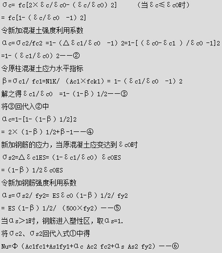 σc2和σs2量值取決于原結構混凝土應變值εc1與混凝土峰值應變εc0的差值Δεc1=εc0-εc1.